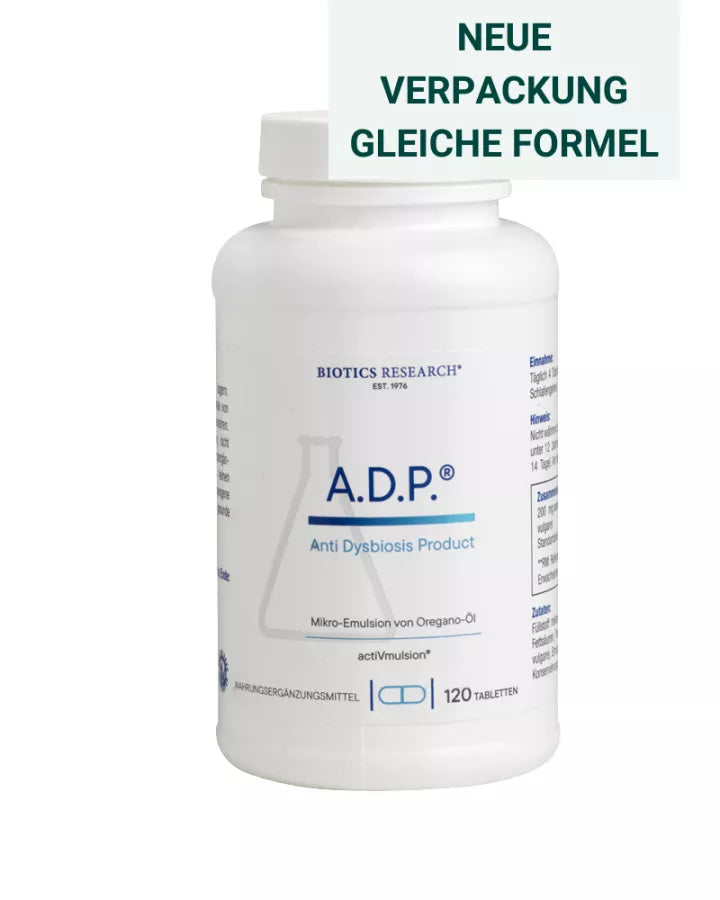 A.D.P.® utilise des technologies de micro-émulsification et de libération prolongée et délivre de l'huile d'origan standardisée dans l'ensemble du système digestif.